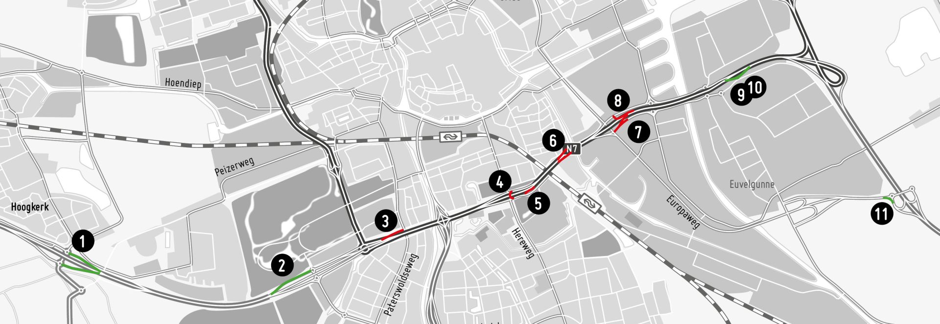 De afrit van de zuidelijke ringweg bij de Lübeckweg ging half juni 2020 voor enkele jaren dicht. Deze afrit bij Dagblad van het Noorden verviel vanwege de werkzaamheden op en rond het Europaplein. De afrit komt in de eindsituatie terug, maar dan iets oostelijker aan de Lübeckweg.