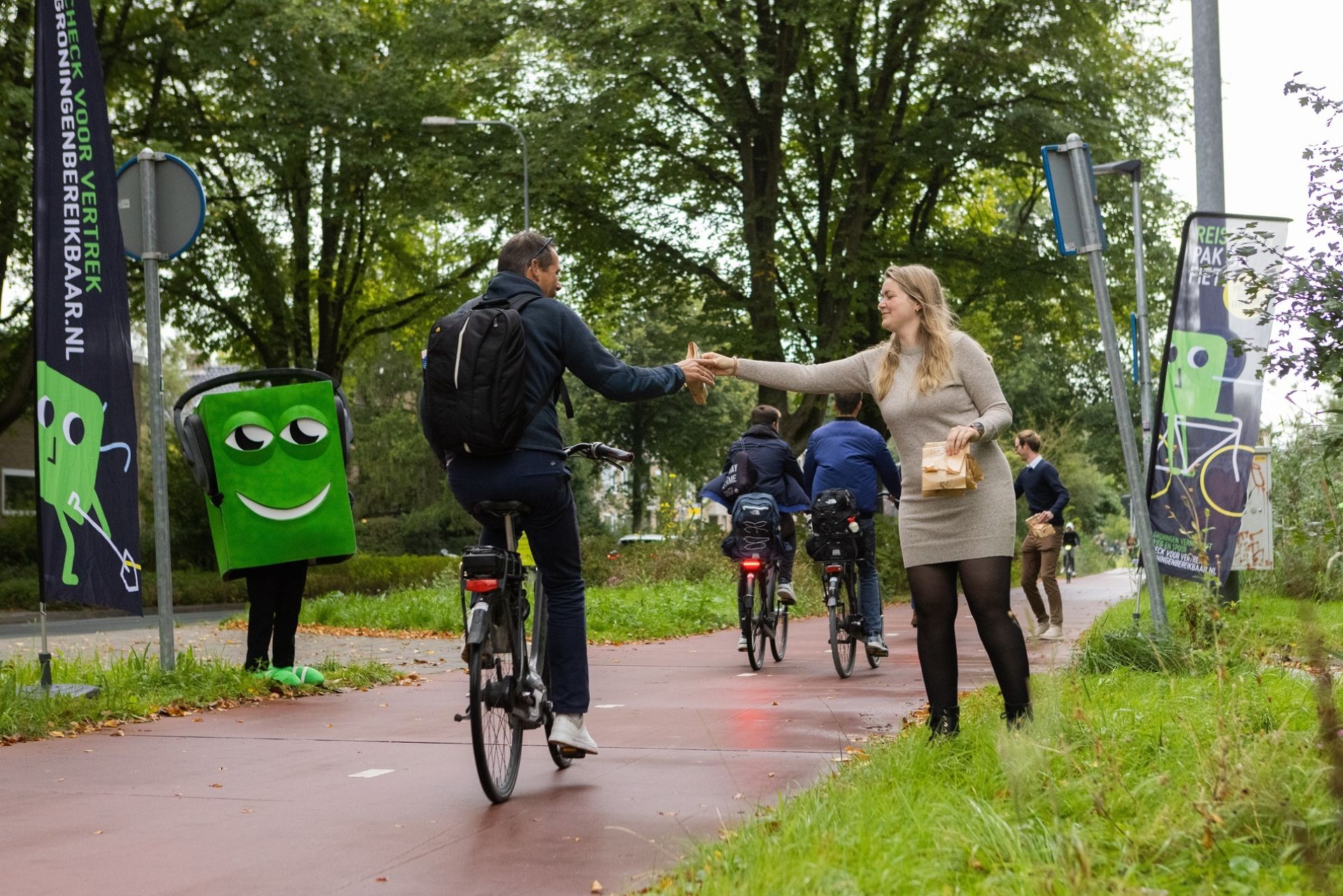 Een groot aantal fietsers op weg naar Groningen is donderdagochtend 16 september verrast met een Gronings broodje. Het presentje werd aangeboden door Groningen Bereikbaar in het kader van de landelijke Fiets naar je Werk Dag. De organisatie stimuleert het gebruik van de fiets voor de rit naar het werk en school en greep deze dag aan om de fietsers in het zonnetje te zetten.