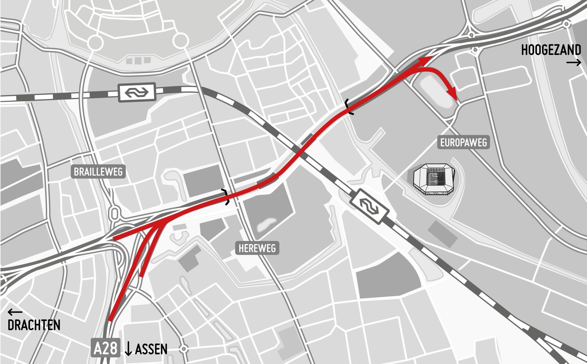 Verkeer wordt omgeleid via de westelijke, noordelijke en oostelijke ringweg.