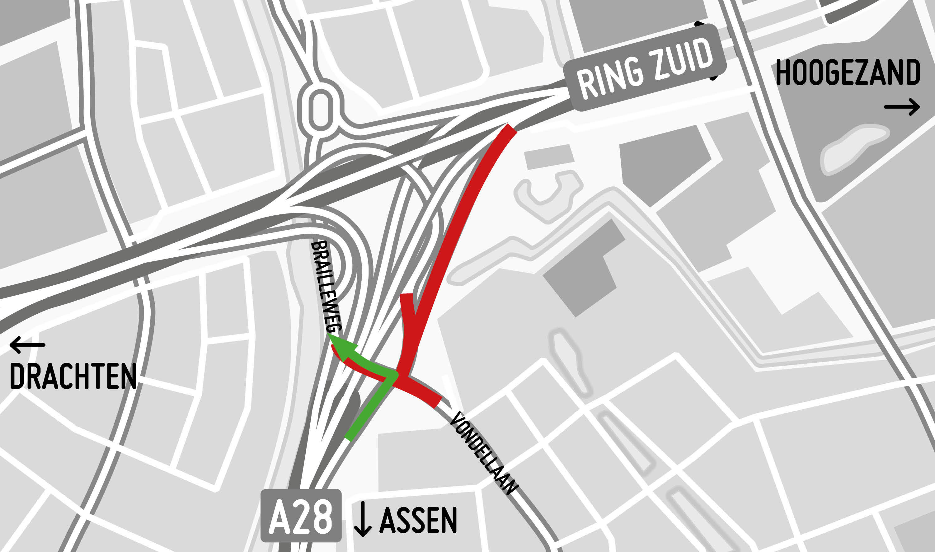Van vrijdag 19 maart 22.00 uur tot maandag 22 maart 06.00 is de zuidelijke ringweg van Groningen afgesloten van het Julianaplein tot de afrit 36 bij Laan Corpus den Hoorn voor verkeer in de richting Drachten. Verkeer wordt omgeleid via de oostelijke, noordelijke en westelijke ringweg.