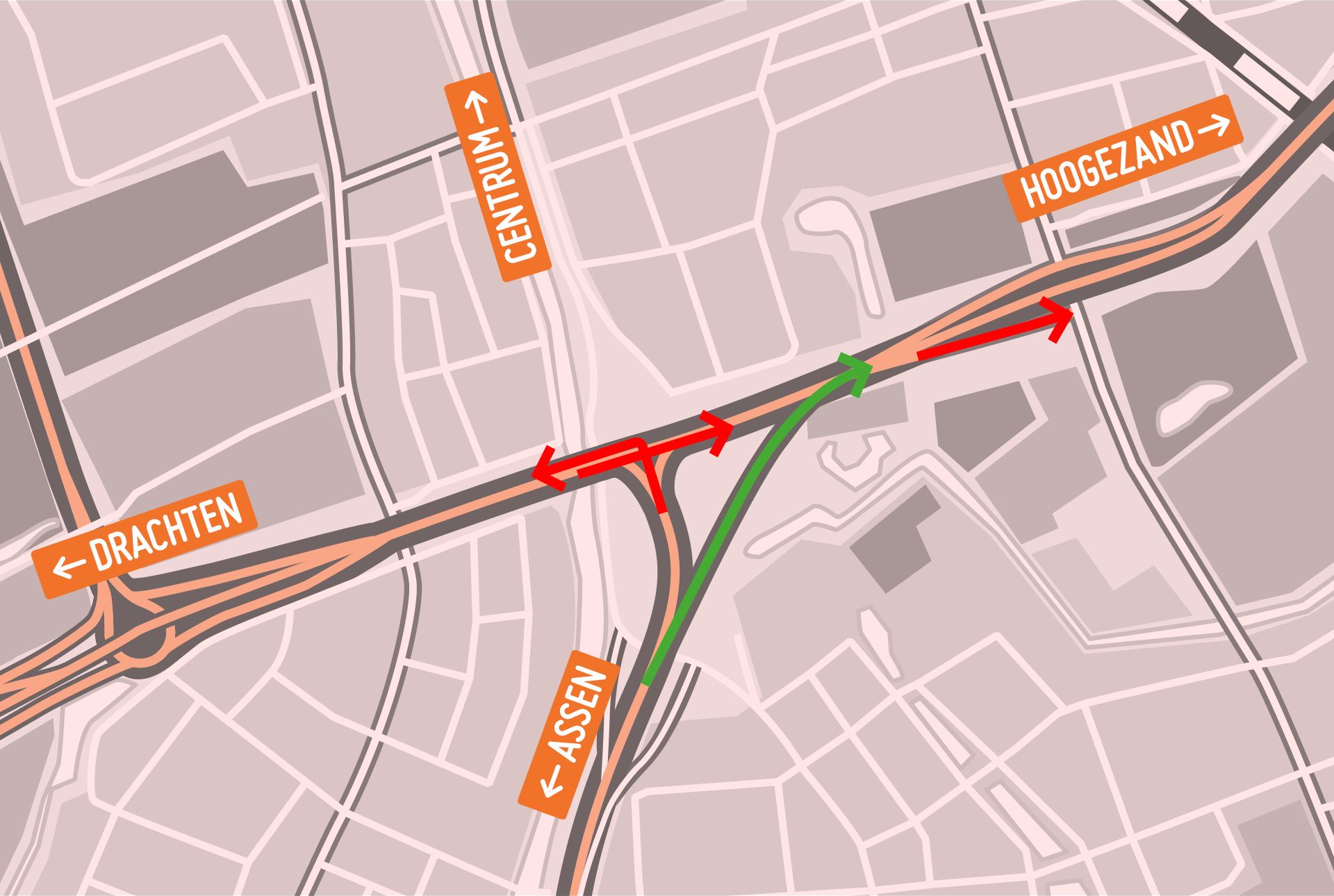 We verwachten ernstige verkeershinder op de omleidingsroutes, maar ook op de andere wegen in en rond de stad. Houd hier rekening mee en laat zoveel mogelijk de auto staan. Om het verkeer door te laten stromen is het nodig dat er dagelijks 80.000 auto's minder op de wegen in en rond Groningen rijden. Welke richtingen er afgesloten zijn, verschilt per fase. We laten hieronder zien hoe het zit bij de eerste twee fases.