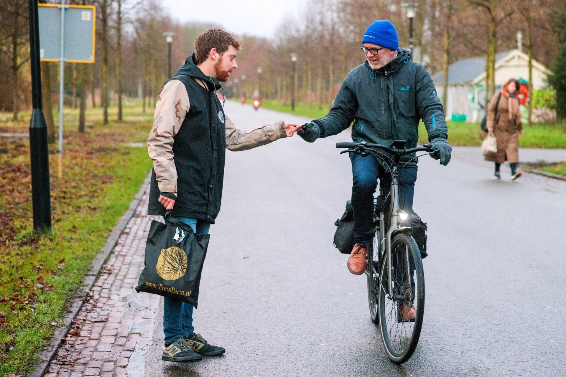 Fietsers en voetgangers werden op dinsdagochtend 10 januari op de Concourslaan in het Stadspark getrakteerd op wat lekkers. Vanwege werkzaamheden worden fietsers en voetgangers op de Concourslaan vanaf deze datum tijdelijk omgeleid. Groningen Bereikbaar en Aanpak Ring Zuid deelden daarom bonbons uit op deze route.