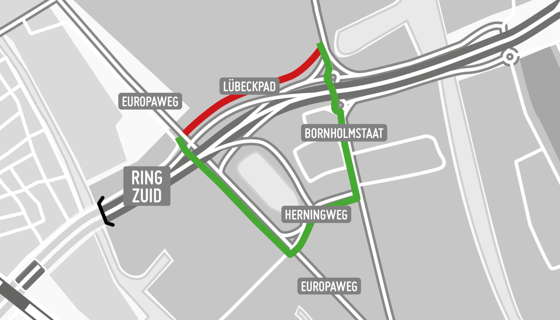 Het Lübeckpad, het fietspad tussen de Bornholmstraat en de Europaweg, is van maandag 11 november 07.00 uur tot vrijdag 13 december 15.00 uur afgesloten. Fietsers kunnen omrijden via de Herningweg of de Sontweg.