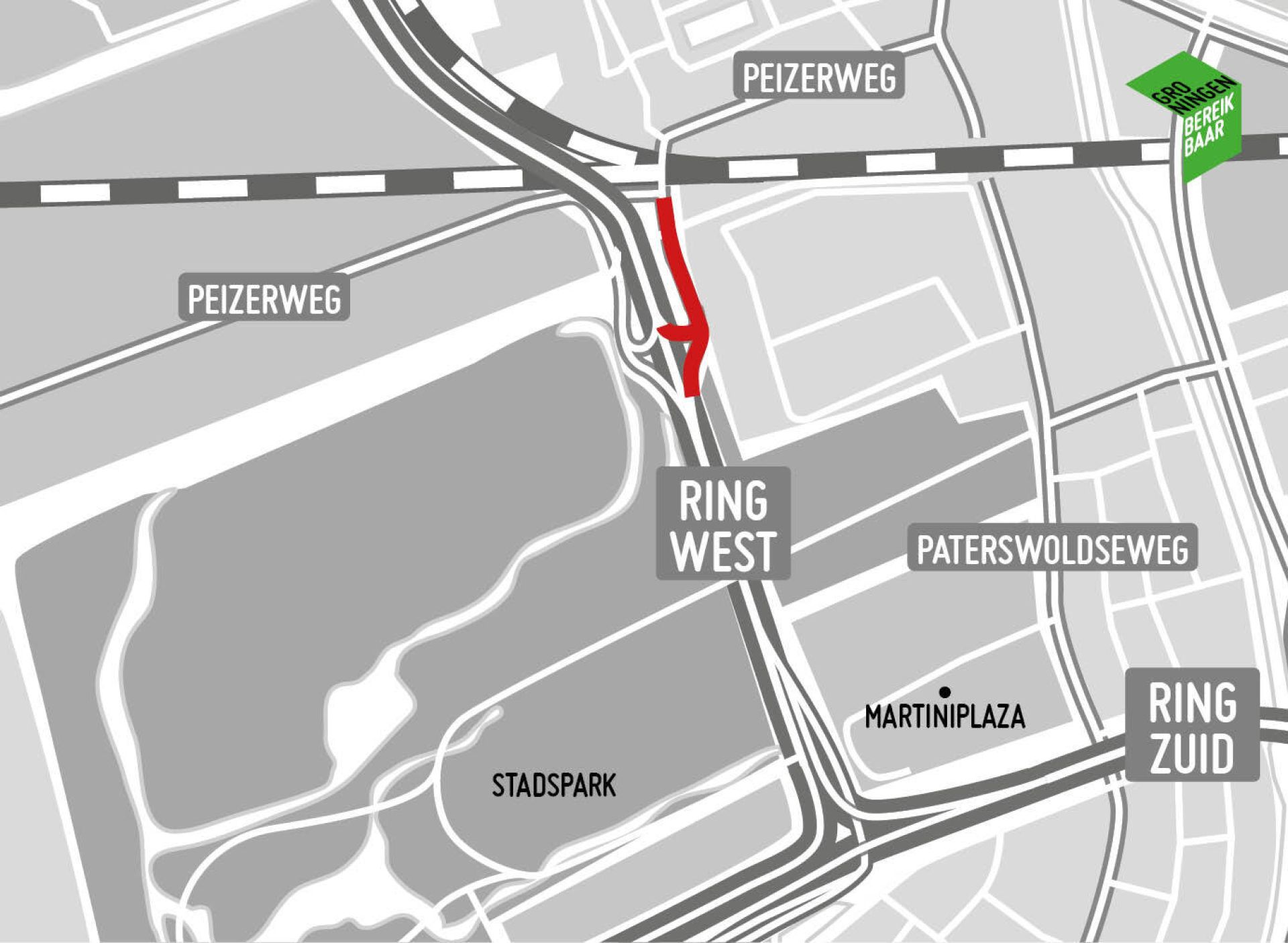 Vanwege onverwachte werkzaamheden aan een waterleiding is op de westelijke ringweg (N370) de toe- en afrit Zeeheldenbuurt (18) afgesloten vanaf vanavond (dinsdag 11 juni) 20.00 uur tot woensdag 12 juni 06.00 uur. Het gaat om de toerit naar het noorden (Paddepoel/Zuidhorn) en de afrit vanuit het zuiden (Vrijheidsplein). De toerit Zeeheldenbuurt richting het noorden is ook van woensdag 12 juni 20.00 uur tot donderdag 13 juni 06.00 uur dicht.
