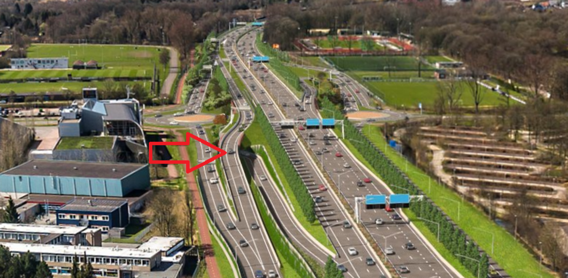 De nieuwe afrit loopt over de oprit vanaf de Laan Corpus heen, die sinds eind maart in gebruik is.
