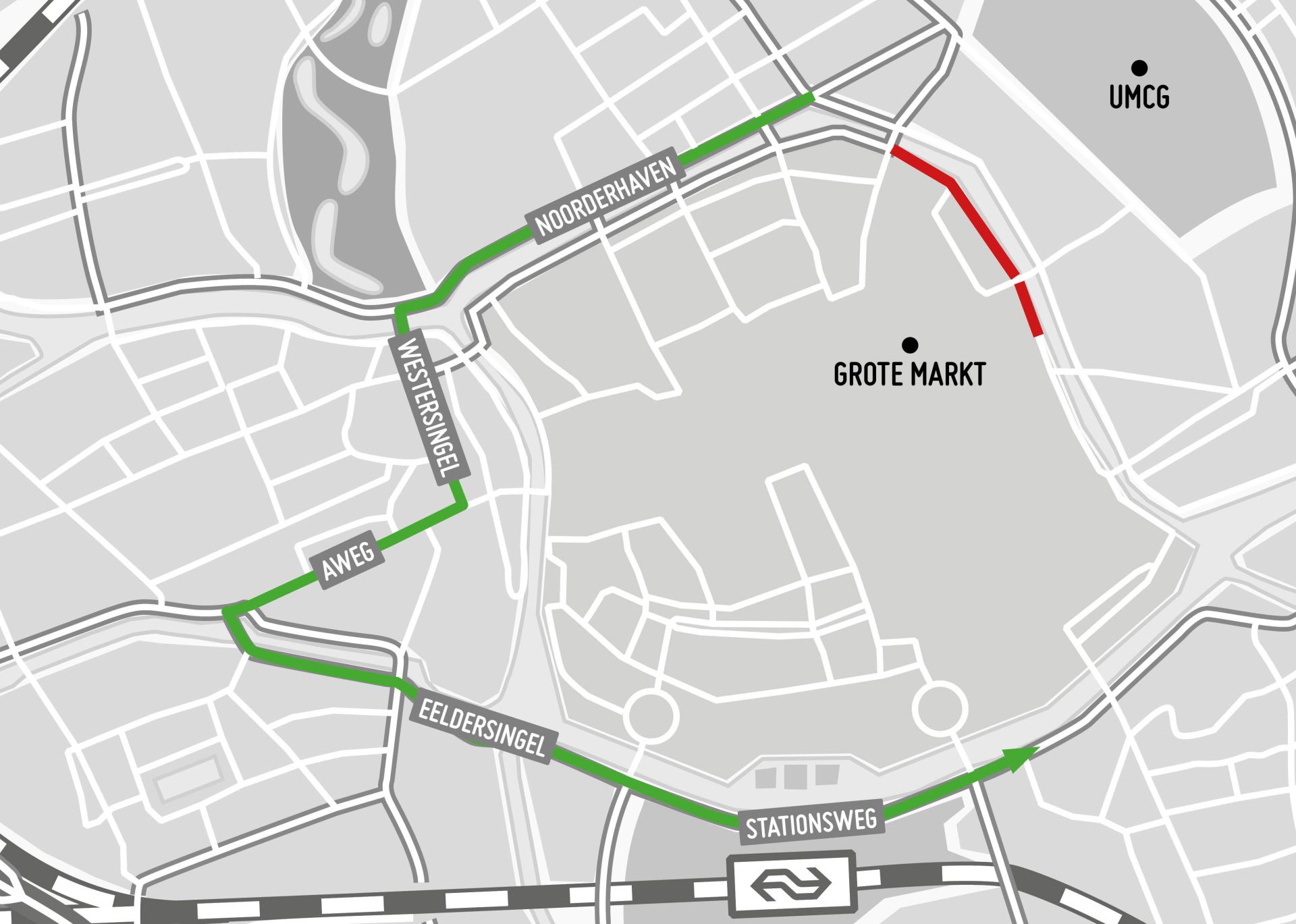Vanaf woensdag 30 oktober wordt de andere rijbaan aangepakt, aan de zijde van het provinciehuis. De weg is daar dicht voor autoverkeer, maar fietsers kunnen er nog wel langs. Automobilisten worden omgeleid via Noorderhaven-Westersingel-Aweg-Eeldersingel-Stationsweg.