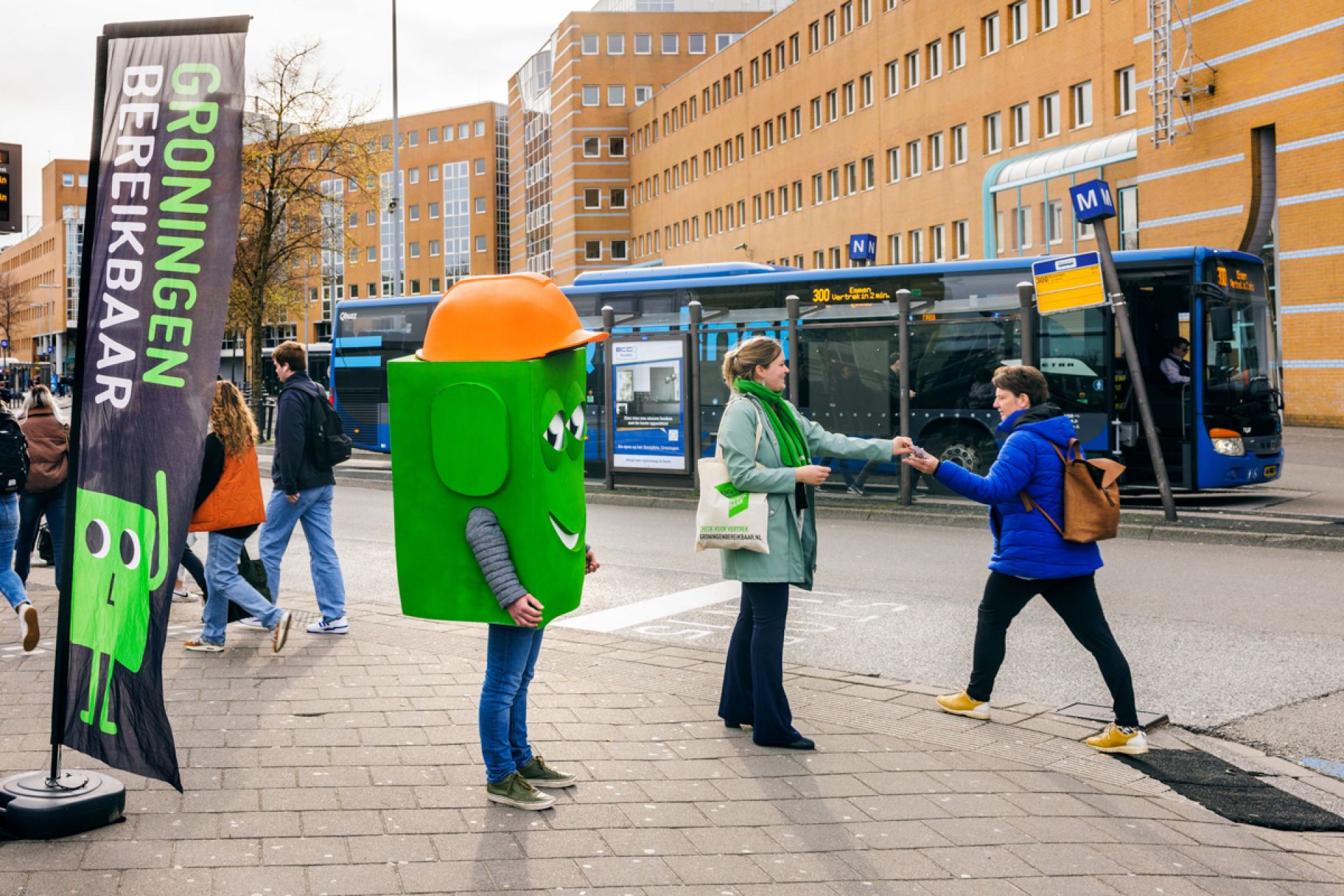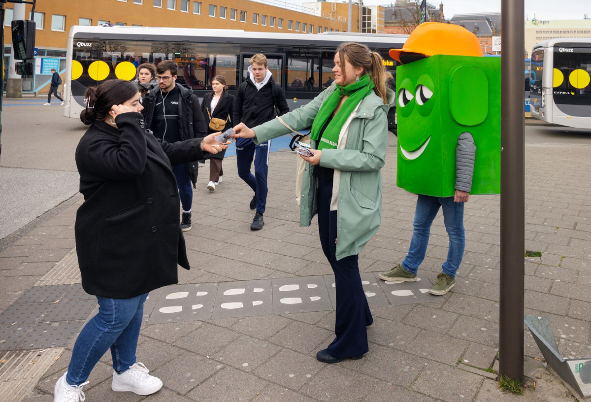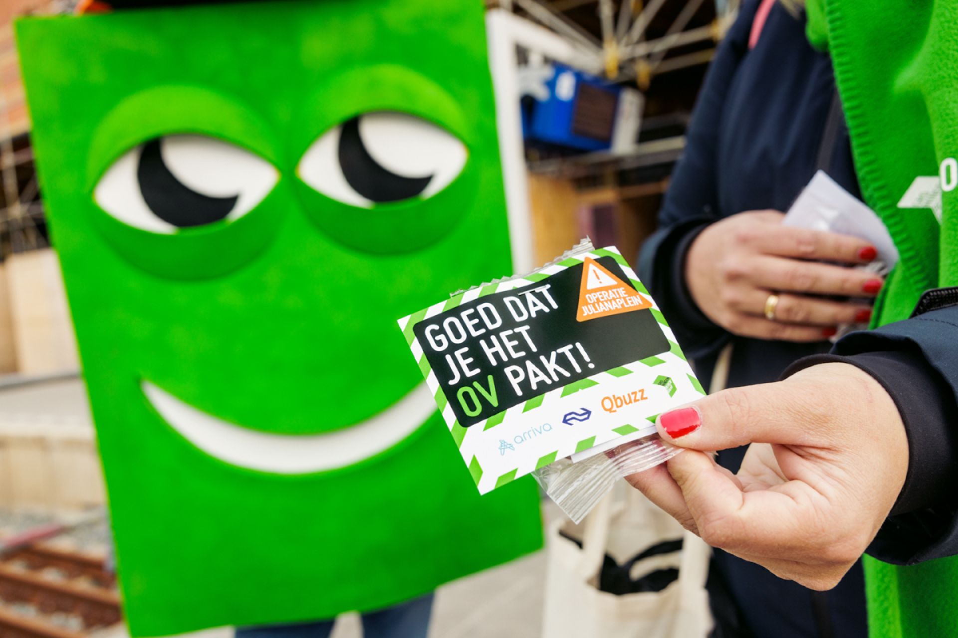 Reizigers op station Groningen zijn dinsdagochtend verrast met wat lekkers. Ze kregen deze traktatie omdat ze met de bus en trein naar Groningen komen tijdens Operatie Julianaplein. De uitdeelactie werd georganiseerd door Arriva, Qbuzz, NS, OV-bureau Groningen Drenthe en Groningen Bereikbaar om de reizigers in het zonnetje te zetten.