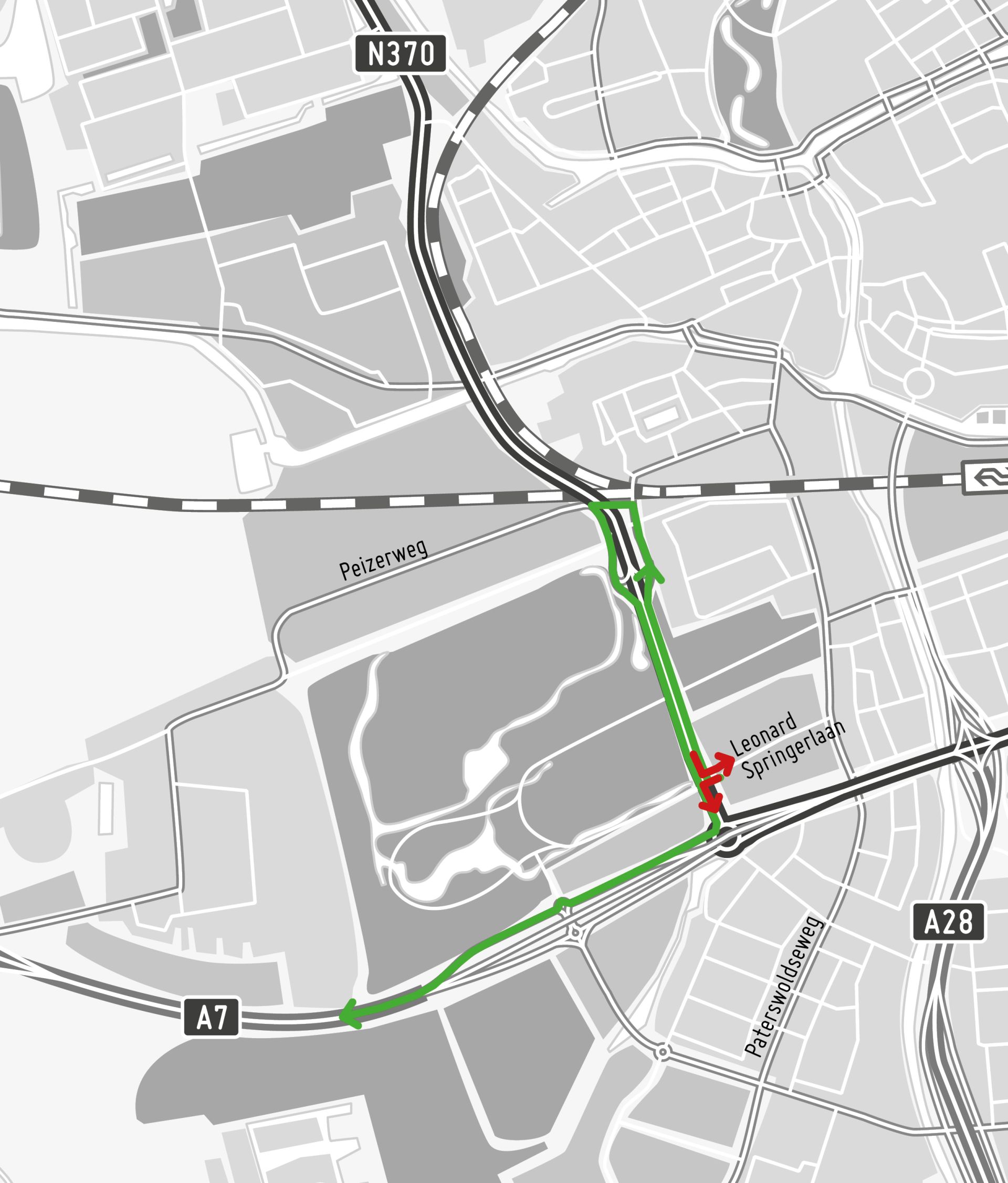 Vanaf maandag 20 september is het voor verkeer vanuit Drachten niet meer mogelijk op de westelijke ringweg rechts af te slaan naar de Leonard Springerlaan. Dit verkeer moet doorrijden naar de volgende afrit. Alleen verkeer op de tijdelijke weg vanaf het Julianaplein kan rechtsaf de Leonard Springerlaan inrijden. Deze situatie geldt ook voor twee jaar.