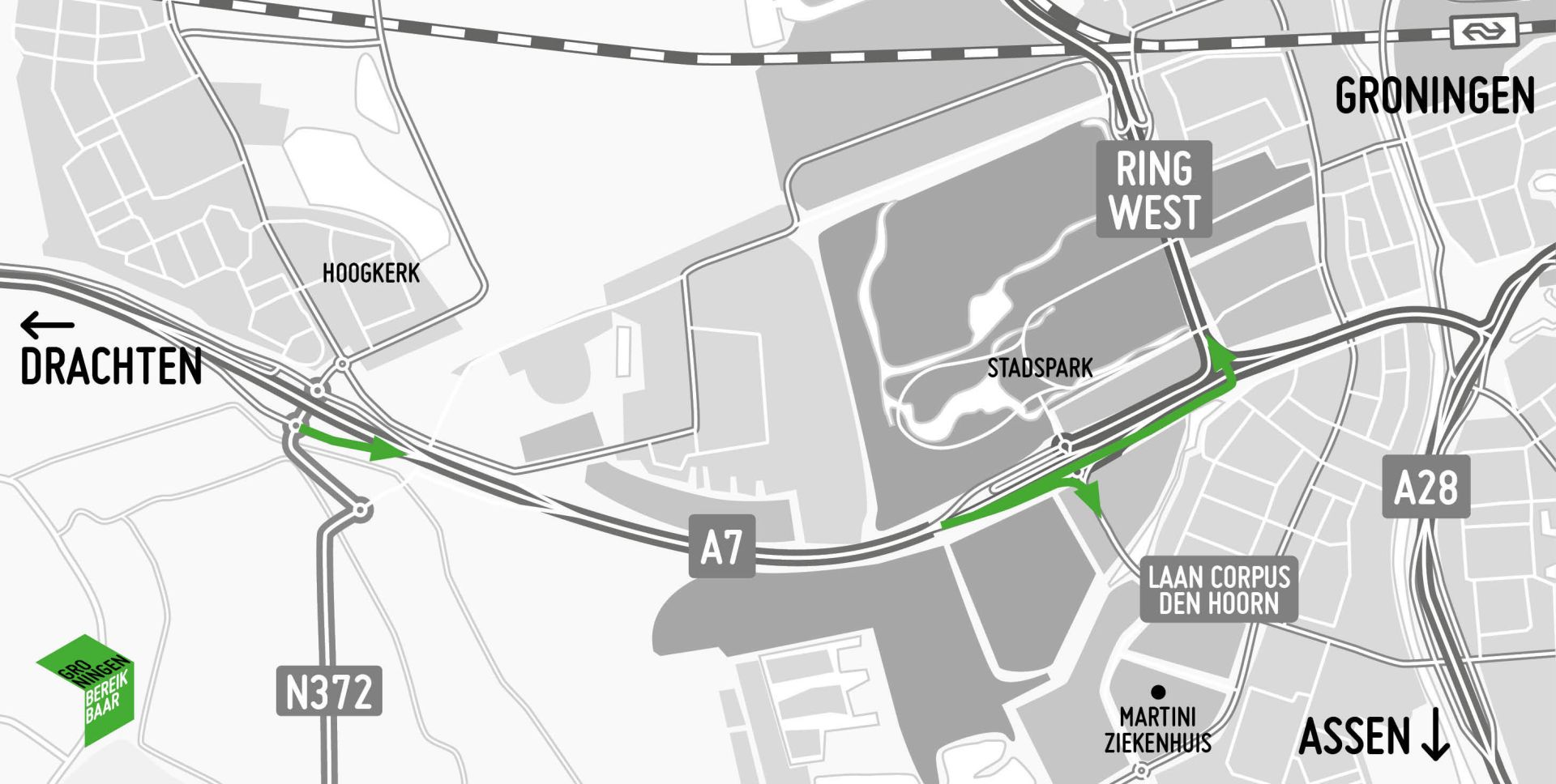 Aannemer Combinatie Herepoort heeft op de A7 nieuw asfalt aangebracht. Het wegvak tussen Hoogkerk en de aansluiting Laan Corpus den Hoorn is verbreed. Daarnaast hebben ze de afrit 36 opnieuw ingericht. De afrit is deels verwijderd en opnieuw opgebouwd. Het verkeer rijdt nu over de definitieve situatie.