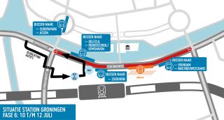 In fase 6 wordt de operatie afgerond. Van donderdag 9 juli tot en met zondag 12 juli rijden er geen treinen van en naar station Groningen. Anders dan in fase 5, rijden er ook bussen in plaats van treinen tussen Groningen-Assen, Groningen-Veendam en Groningen-Bad Nieuweschans. Houd rekening met extra reistijd en plan je reis vooraf in de reisplanner van de vervoerders.